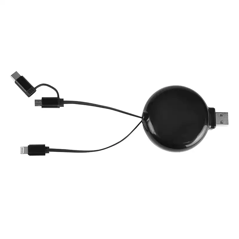 Гъвкаво решение 3 в 1, включващо интегрирани конектори Lightning, Micro-USB и USB-C на една прибираща се макара за максимална съвместимост.